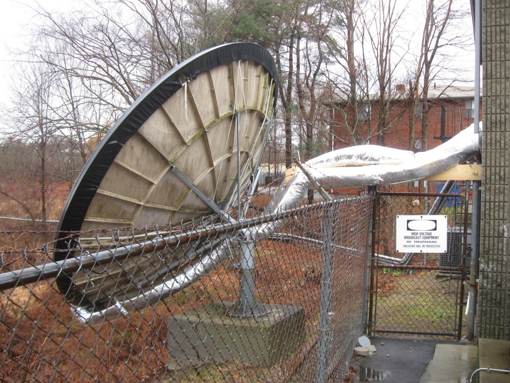 Actually, this winter we haven’t seen too much snow. Nevertheless, snow is something of a chore for us at RIPR (Rhode Island Public Radio, now called The Public’s Radio) because it builds up on our PRSS satellite dish downlink, which blocks the satellite signal. Specifically, our NPR and BBC signal, and that means when it snows = dead air on RIPR!