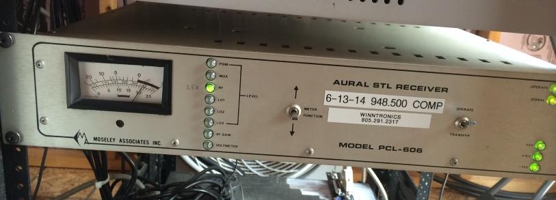 Of course, it helps that we’re using an old (but refurbished) Moseley PCL606 pumping out 20 watts on 948.5MHz, into a Kathrein-Scala MF-950B “Miniflector” parabolic antenna with a whopping +16dBi gain that blasts 800 watts over a mere 5 miles (microwave STL’s are often good for 20 to 50 miles) to an even bigger Kathrein-Scala PR-950B “Paraflector” parabolic receive antenna with an equally whopping +18dBi gain. That bad boy will straighten your hair out, man.