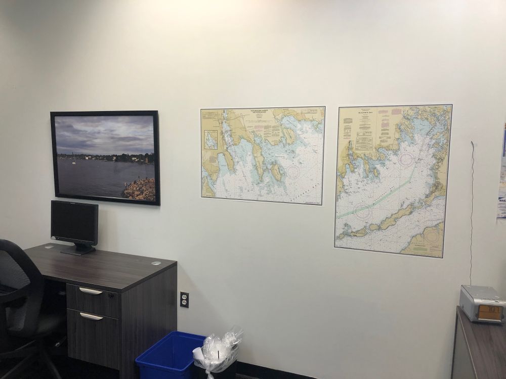 Outside we put a lot of work into decorating the room in a way we thought would be both pleasant to look at AND provide a measure of respect to our host city as much as possible. All pics were taken by your Intrepid Engineer using an iPhone 8S (yes, really!) and then blown up to 24x36in posters at BuildASign.com. The charts are reusable wall decal nautical charts from West Marine. The yellow roadster poster is from a limited run that the great artist Bob Conge did as NPR pledge gifts way back in 1993 and we’ve held on to a few ever since.