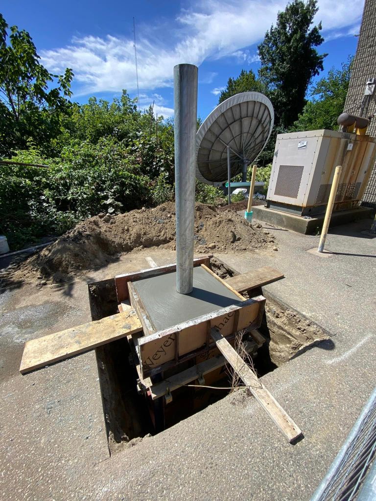 Over the past two weeks I’ve been working extensively with Andre Concrete & Excavation to dig and pour the 5x3x3ft concrete base, and with Allied Satellite & Antenna to assemble & install the dish and heater.